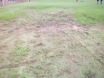 Foto: Der Nebenplatz beim TSV Havelse war alles andere als Regionalligatauglich. Die vielen Regenfälle und Überflutungen hatten die Drainage ausser Kraft gesetzt
