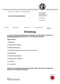 Nach der Vorankündigung nun die offizielle Einladung für alle Vereinsmitglieder zur Jahreshauptversammlung.